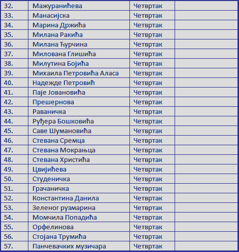 | 1 | Краља Петра првог од Ж.Зрењанина |